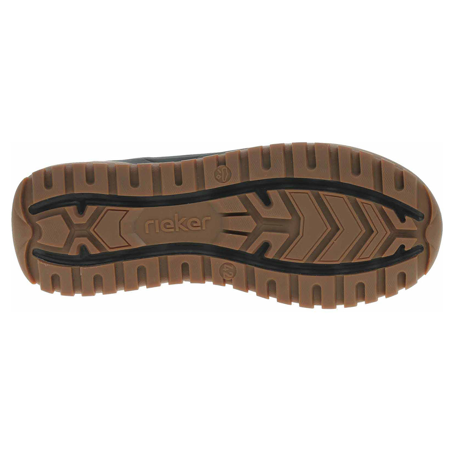 Boty Rieker - lepená pánská kotníková obuv se svrškem ze syntetiky a s textilním lemem kotníku je vyteplená textilní podšívkou. Obuv je vybavená vodoodpudivou membránou Rieker TEX a vyndavací paměťovou stélkou RiekerSoft, kterou můžete vyjmout, vyměnit nebo vyvětrat. Thermo Insole - stélky určené do nízkých teplot, které jsou ze spodní strany vybavené hliníkovou fólií, která poskytuje výborné termoizolační vlastnosti a chrání tak chodidlo před chladem. Pohodlné nazouvání zajišťuje zip na vnitřní straně a šněrování na nártu. Klínek je vysoký 4,5 cm a platforma je vysoká 3,- cm. Podešev je flexibilní a díky systému Antistress (lehkost, pružnost, prostornost a vynikající absorpce nárazů) Vám obuv zajistí pohodlí při každém kroku. Lepená obuv - pevnost lepeného spoje může být negativně ovlivněna promáčením nebo propocením, event. opakovaným používáním nedostatečně vysušené obuvi. Při neopatrné chůzi může dojít k mechanickému uvolnění lepeného spoje - ukopnutí.