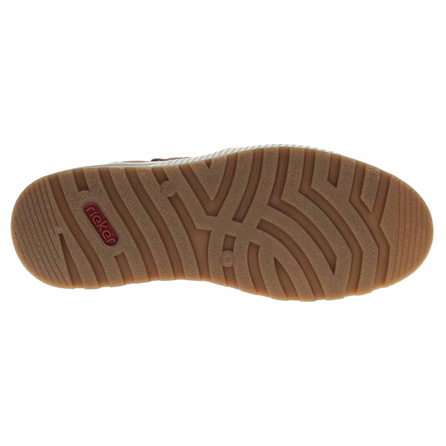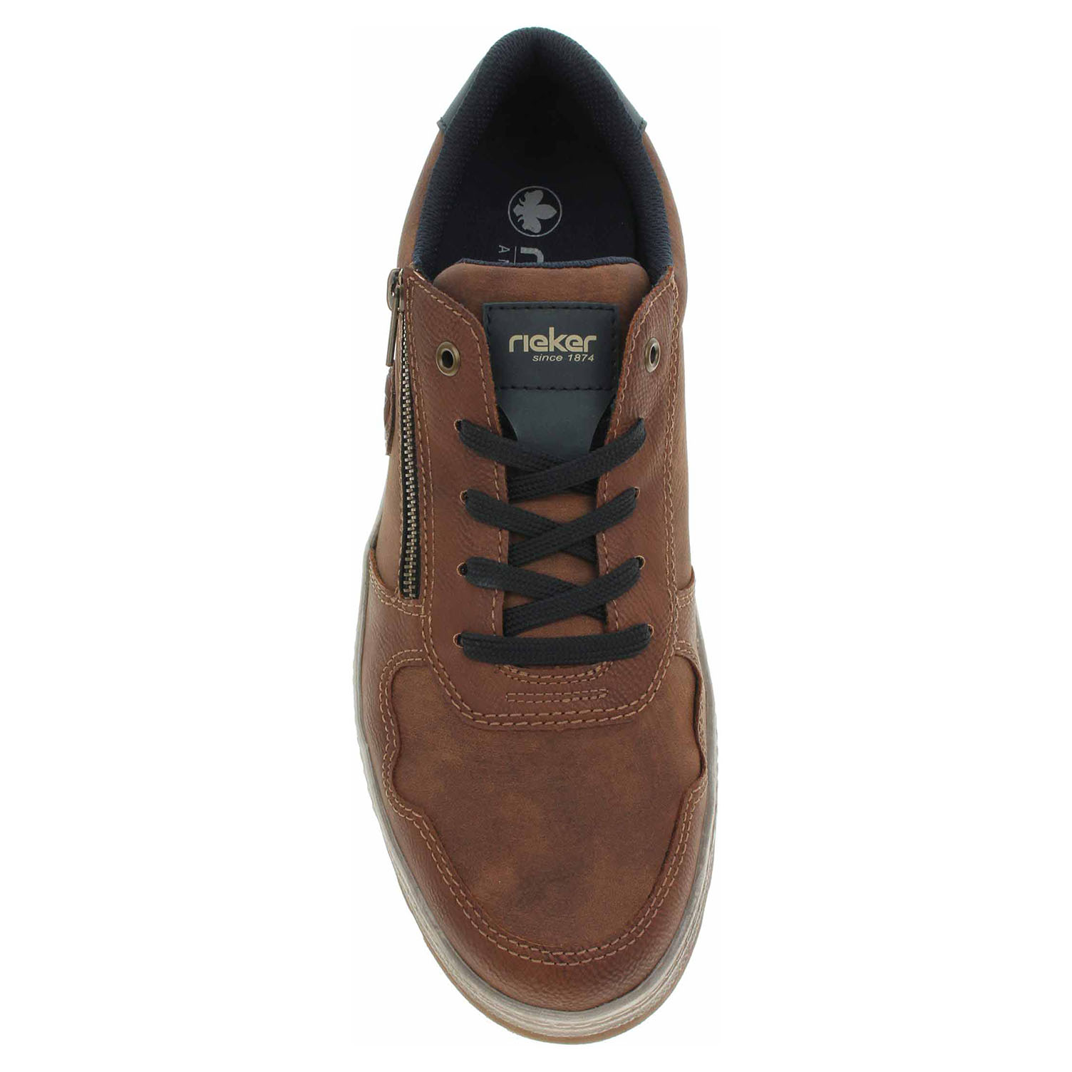 Boty Rieker - lepená pánská vycházková obuv nadměrné šíře se svrškem ze syntetiky a s textilní podšívkou i stélkou. Obuv se šněrováním je na vnější straně nártu vybavená zipem, který usnadňuje nazouvání. Podešev je flexibilní a díky systému Antistress (lehkost, pružnost, prostornost a vynikající absorpce nárazů) Vám obuv zajistí pohodlí při každém kroku. EXTRA WIDE – boty jsou širšího střihu, tvar boty je přizpůsoben chodidlu pro vytvoření dostatečného prostoru v oblasti přední části chodidla. Klínek je vysoký 3,4 cm. Lepená obuv - pevnost lepeného spoje může být negativně ovlivněna promáčením nebo propocením, event. opakovaným používáním nedostatečně vysušené obuvi. Při neopatrné chůzi může dojít k mechanickému uvolnění lepeného spoje - ukopnutí.
