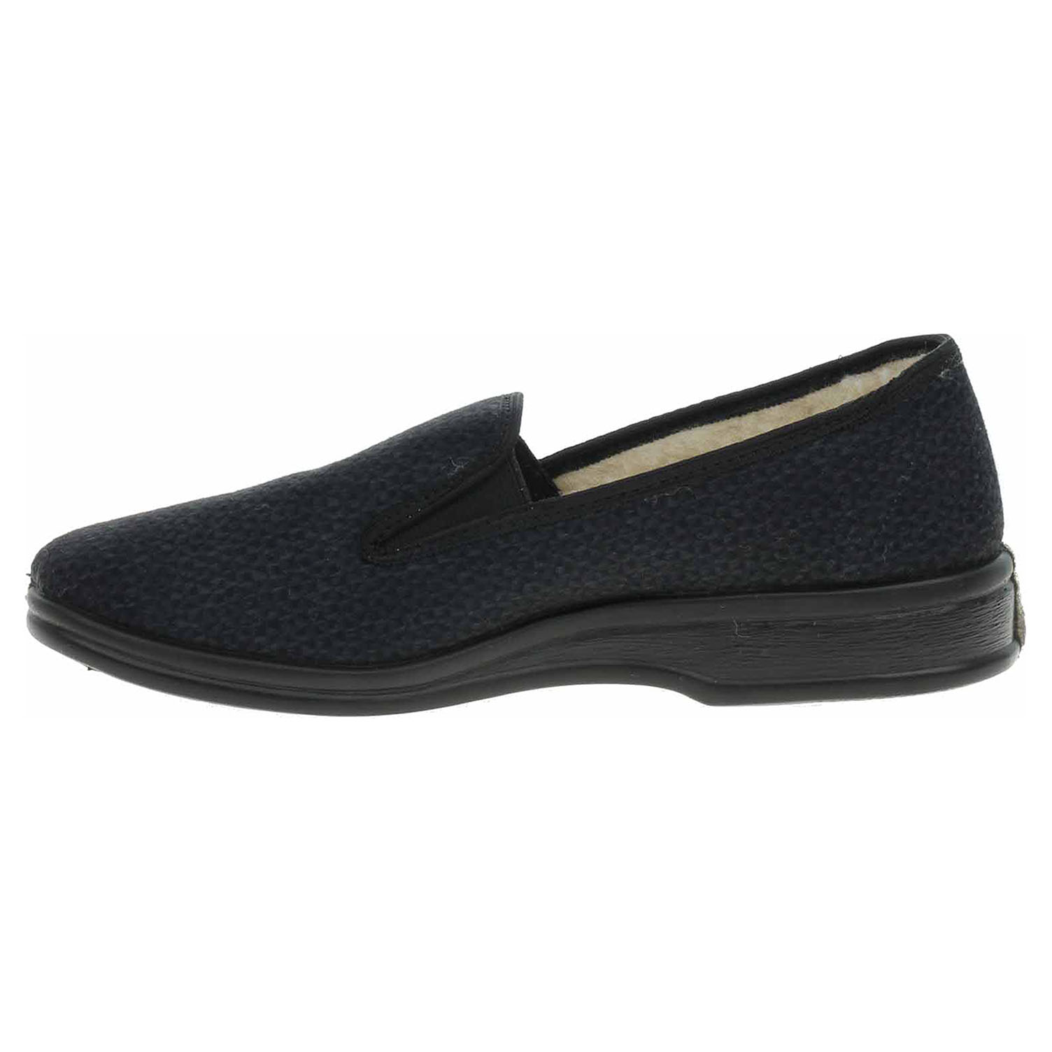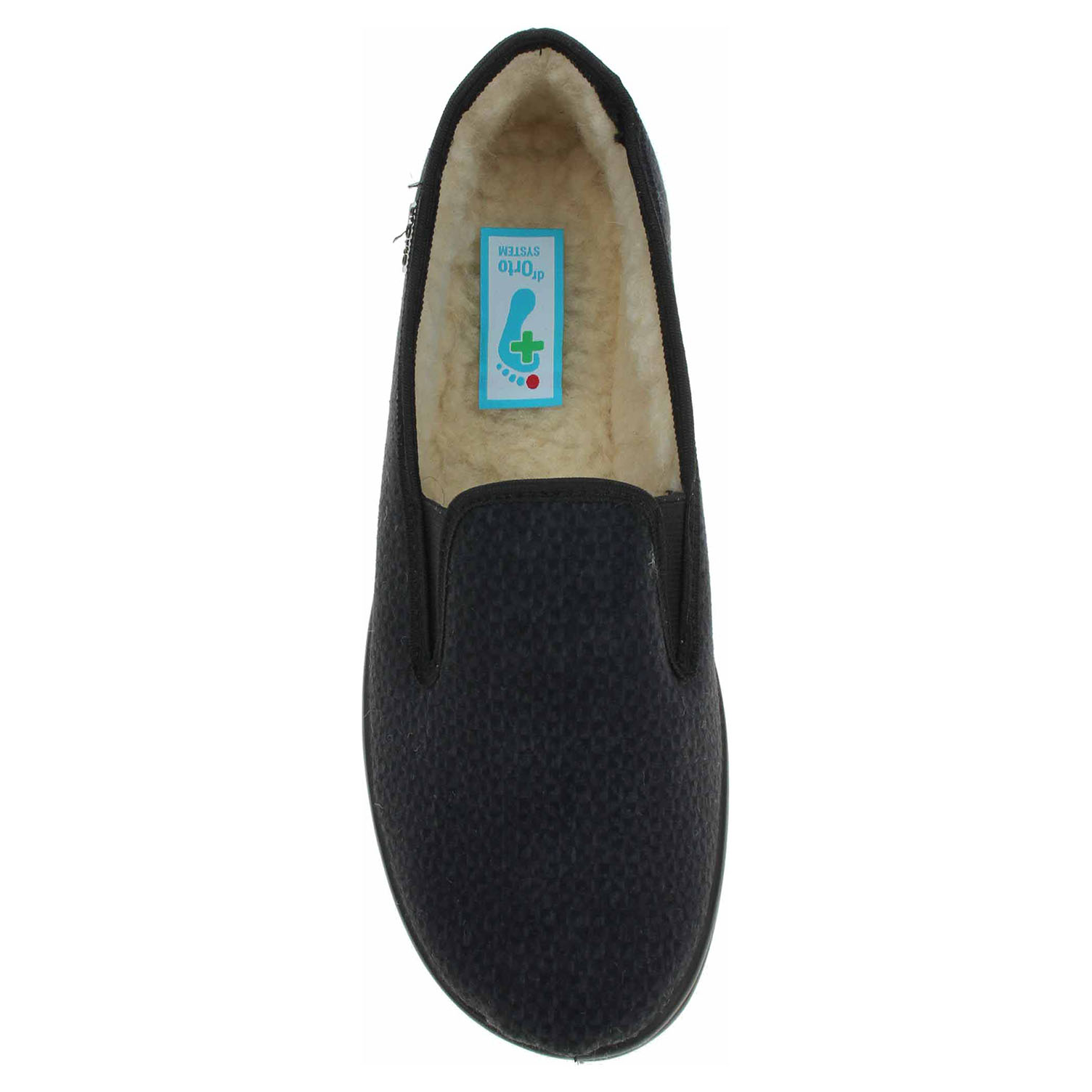 Boty Dr.Orto Wool - pánské bačkory nadměrné šíře K s textilním svrškem a s podšívkou i stélkou z ovčí vlny. Pohodlné nazouvání zajišťují vsazené gumičky na nártu. Klínek je vysoký 3,- cm. Dr.Orto Wool - kolekce obuvi s podšívkou i stélkou z ovčí vlny, která se doporučuje nejen na dlouhé, chladné večery, ale i pro studená chodidla způsobená různými typy onemocnění např. cukrovkou, anémií nebo aterosklerózou. Pánská zdravotní domácí obuv nadměrné šíře K je vhodná pro diabetiky a diabetickou nohu. Špička obuvi je vysoká a široká a svršek obuvi se skvěle přizpůsobí tvaru nohy (doporučujeme také pro hallux valgus a kladívkové prsty). Obuv z prodyšného materiálu je maximálně flexibilní a lehká. Podešev je protiskluzná a skvěle tlumí mikronárazy.