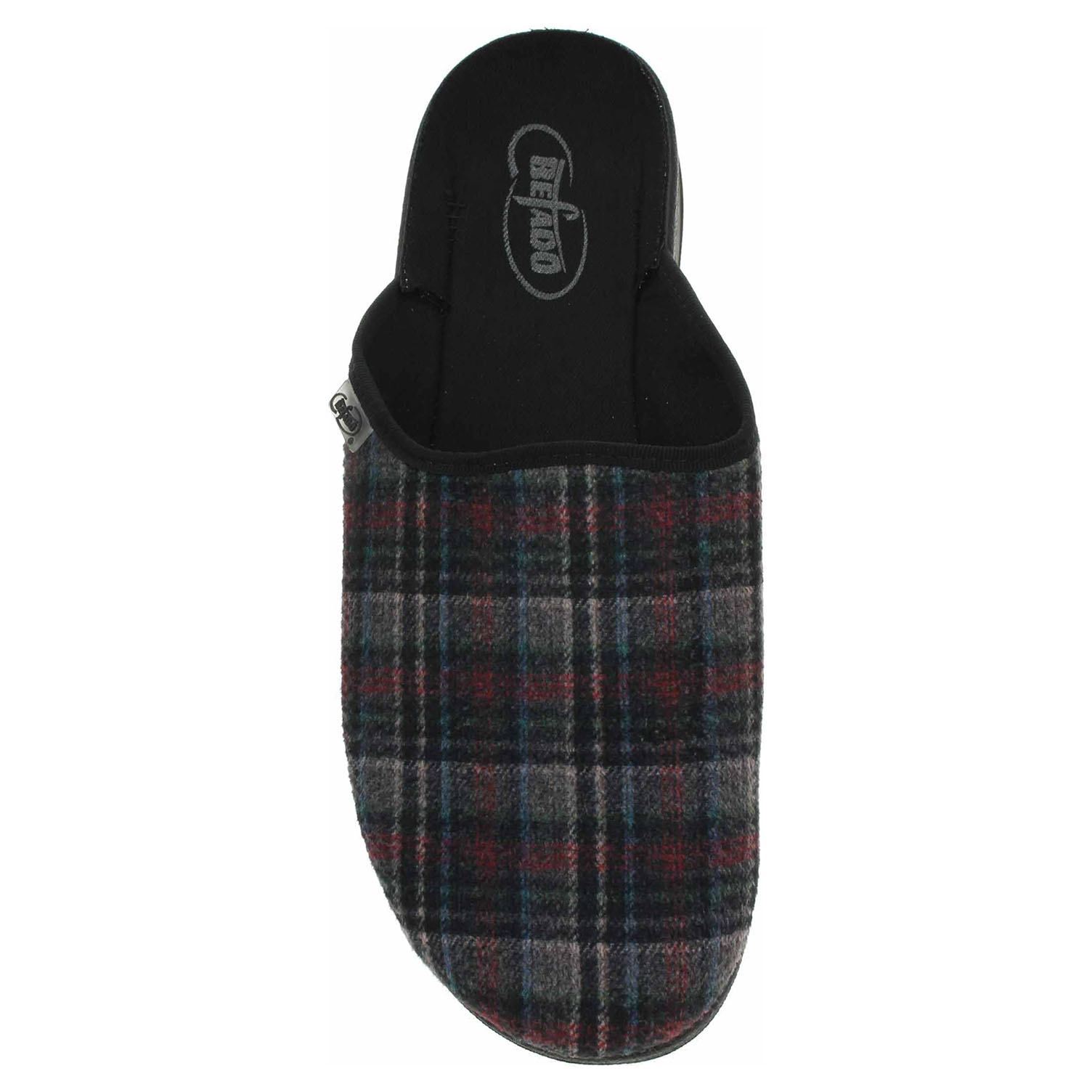 Boty Befado - pánské domácí pantofle s plnou špičkou mají klínek vysoký 3,- cm. Svršek, podšívka i stélka jsou textilní.