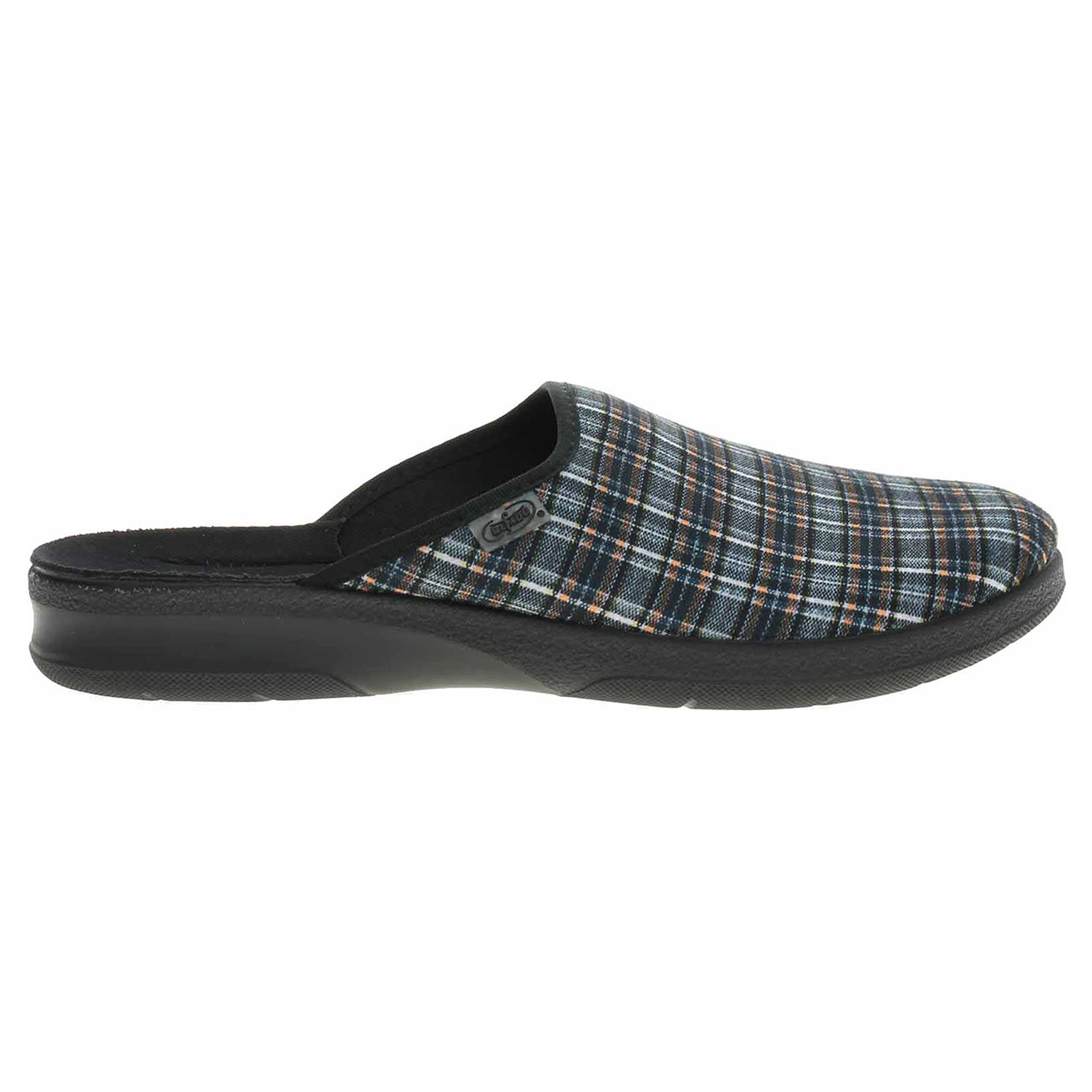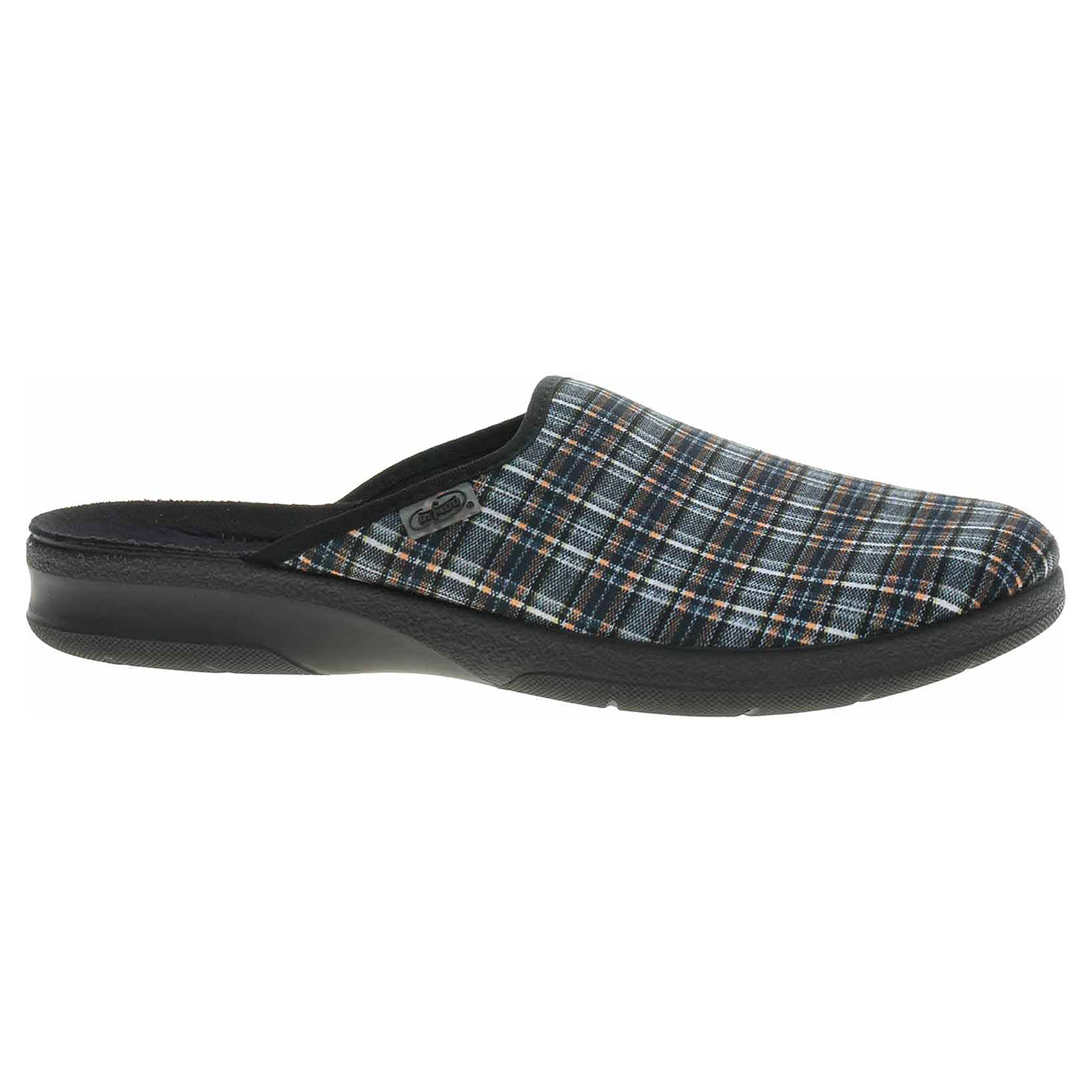 Boty Befado - pánské domácí pantofle s plnou špičkou. Svršek obuvi i stélka jsou textilní. Klínek je vysoký 3,- cm.