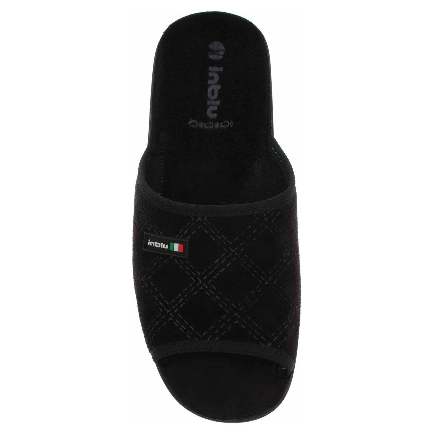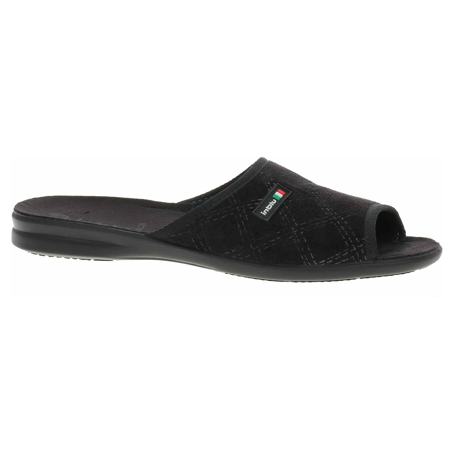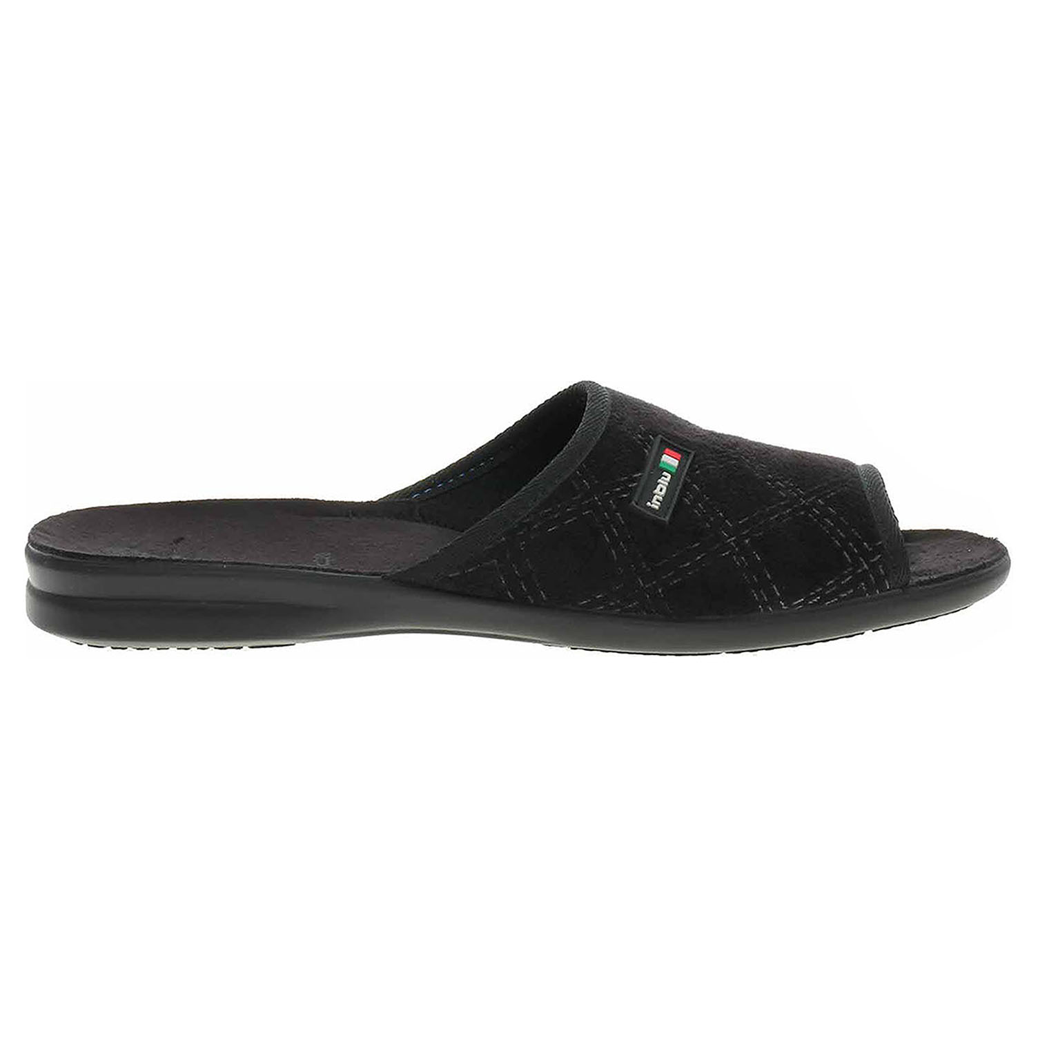 Boty Inblu - pánské domácí pantofle s volnou špičkou na klínku vysokém 3,- cm. Svršek, podšívka i stélka jsou textilní.