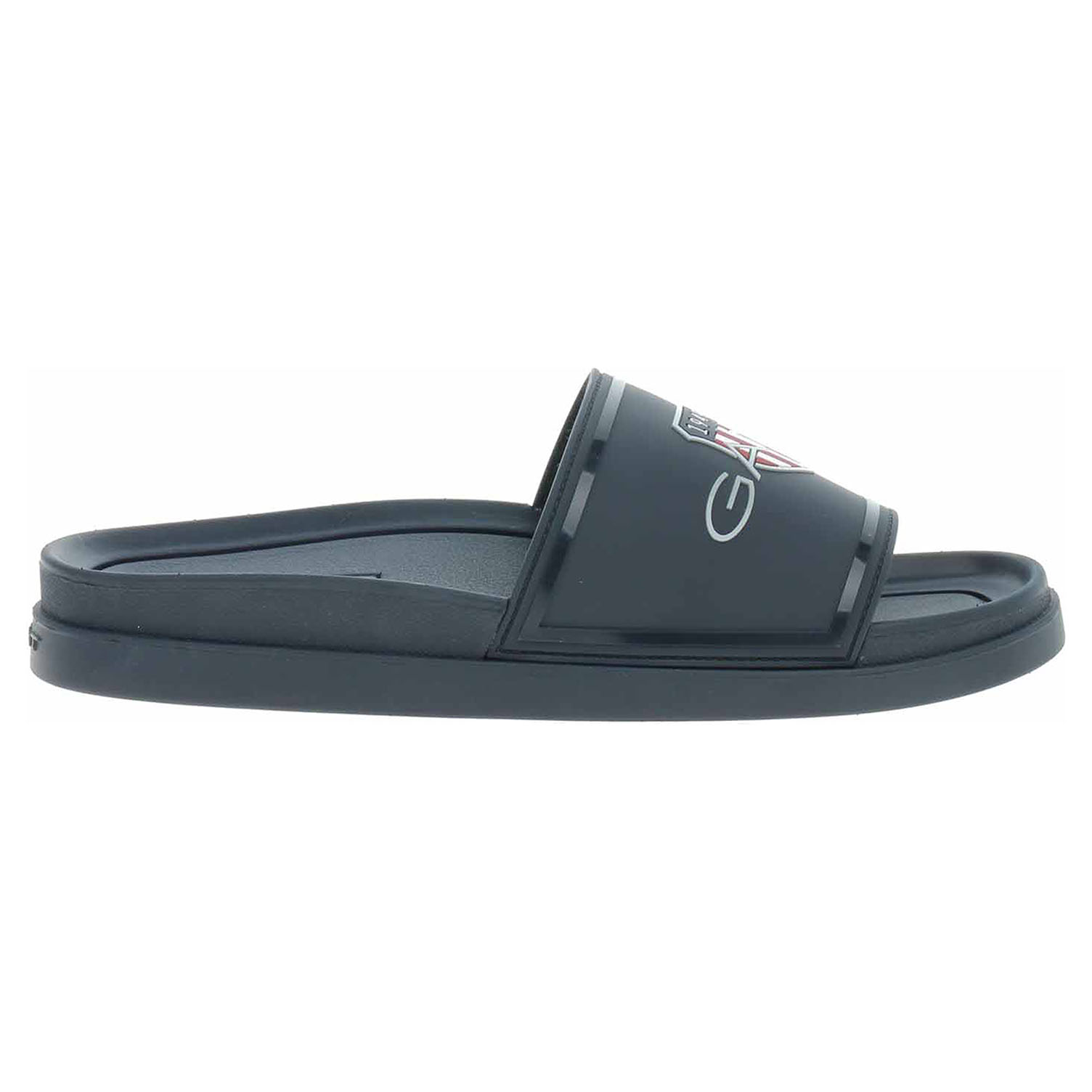 Boty Gant - plážové pánské pantofle se svrškem ze syntetického materiálu, s textilní podšívkou a stélkou ze synetiky mají klínek vysoký 2,5 cm. Plážová obuv - je určena k rekreačním účelům v okolí koupališť, jezer a mořských pláží. Obuv není vhodná při chůzi na tvrdém povrchu - chodník, silnice.