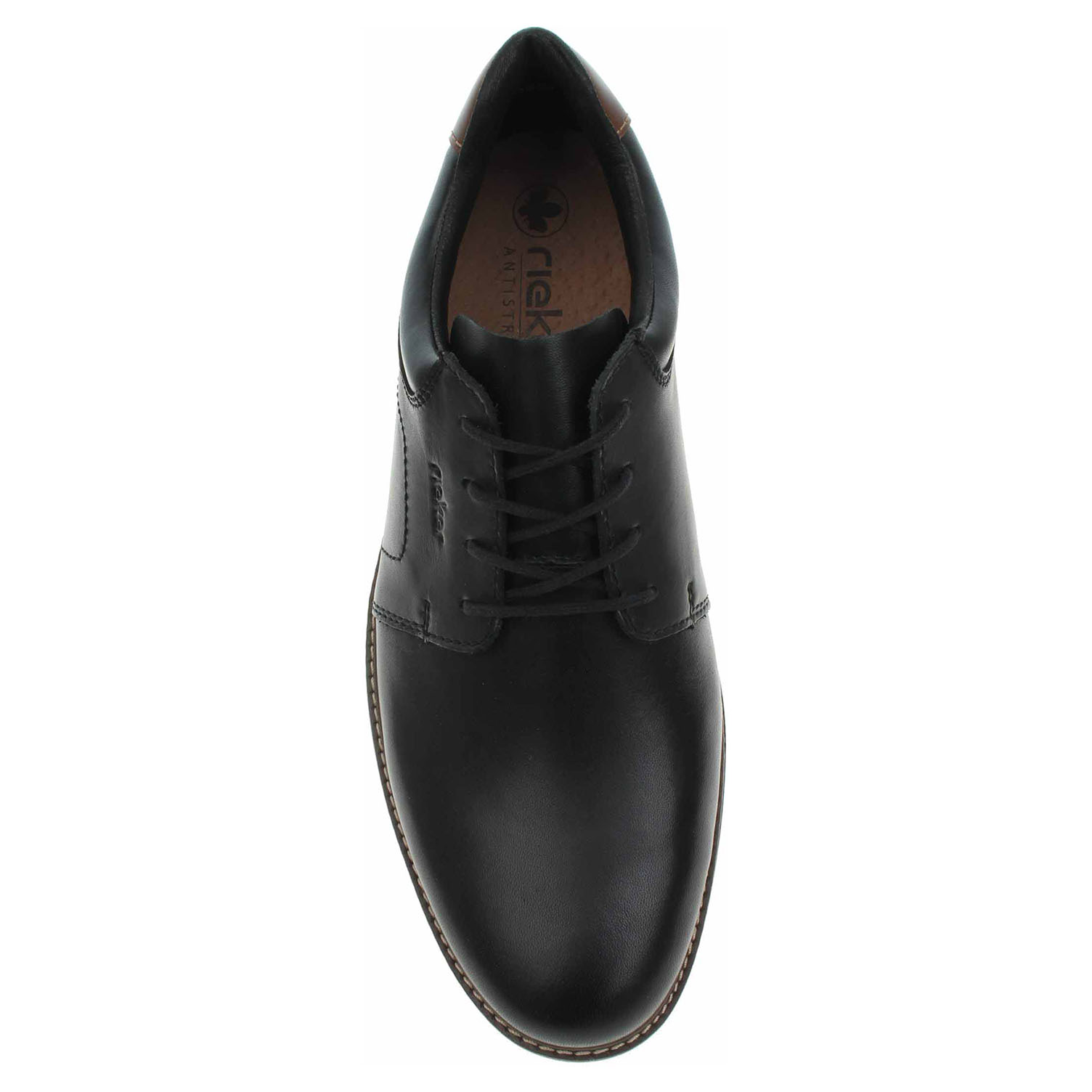 Boty Rieker - lepené pánské polobotky se šněrováním mají svršek kombinovaný useň/syntetika, podšívku kombinovanou textil/syntetika a stélku s nášlapnou vrstvou ze syntetiky. Klínek je vysoký 3,- cm. Podešev je flexibilní a díky systému Antistress skvěle tlumí nárazy a otřesy. Lepená obuv - pevnost lepeného spoje může být negativně ovlivněna promáčením nebo propocením, event. opakovaným používáním nedostatečně vysušené obuvi. Při neopatrné chůzi může dojít k mechanickému uvolnění lepeného spoje - ukopnutí.