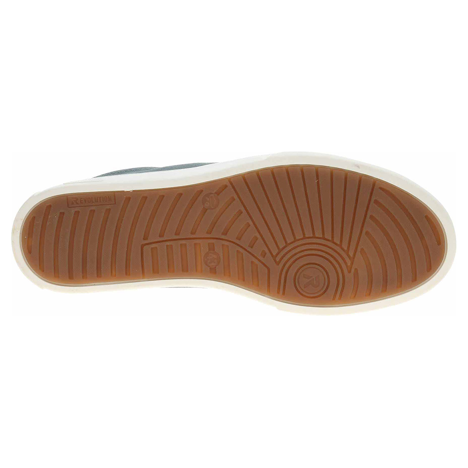 Boty Rieker - flexiblové pánské polobotky řady Revolution se svrškem a podšívkou z usně jsou vybavené vyndavací stélkou s textilní nášlapnou vrstvou. RevolutionSoft – unikátní stélka z paměťové pěny, která změkčuje došlap, maximálně se přizpůsobí tvaru Vašeho chodidla, ale zároveň ji můžete vyjmout, vyměnit nebo vyvětrat. Pohodlné nazouvání zajišťuje elastické šněrování, které je možné vyměnit za bavlněné tkaničky. Rieker R-EVOLUTION je nová řada moderní sportovní obuvi s obrovským důrazem na použité technologie a na komforní pohodlí i při celodenním nošení. Klínek je vysoký 2,- cm. Flexiblová obuv - prošívaná podešev, obuv používejte v suchém prostředí. Při zvýšené vlhkosti může dojít k promáčení obuvi. Obuv pravidelně impregnujte nebo krémujte, zvláště pak prošívaný okraj.