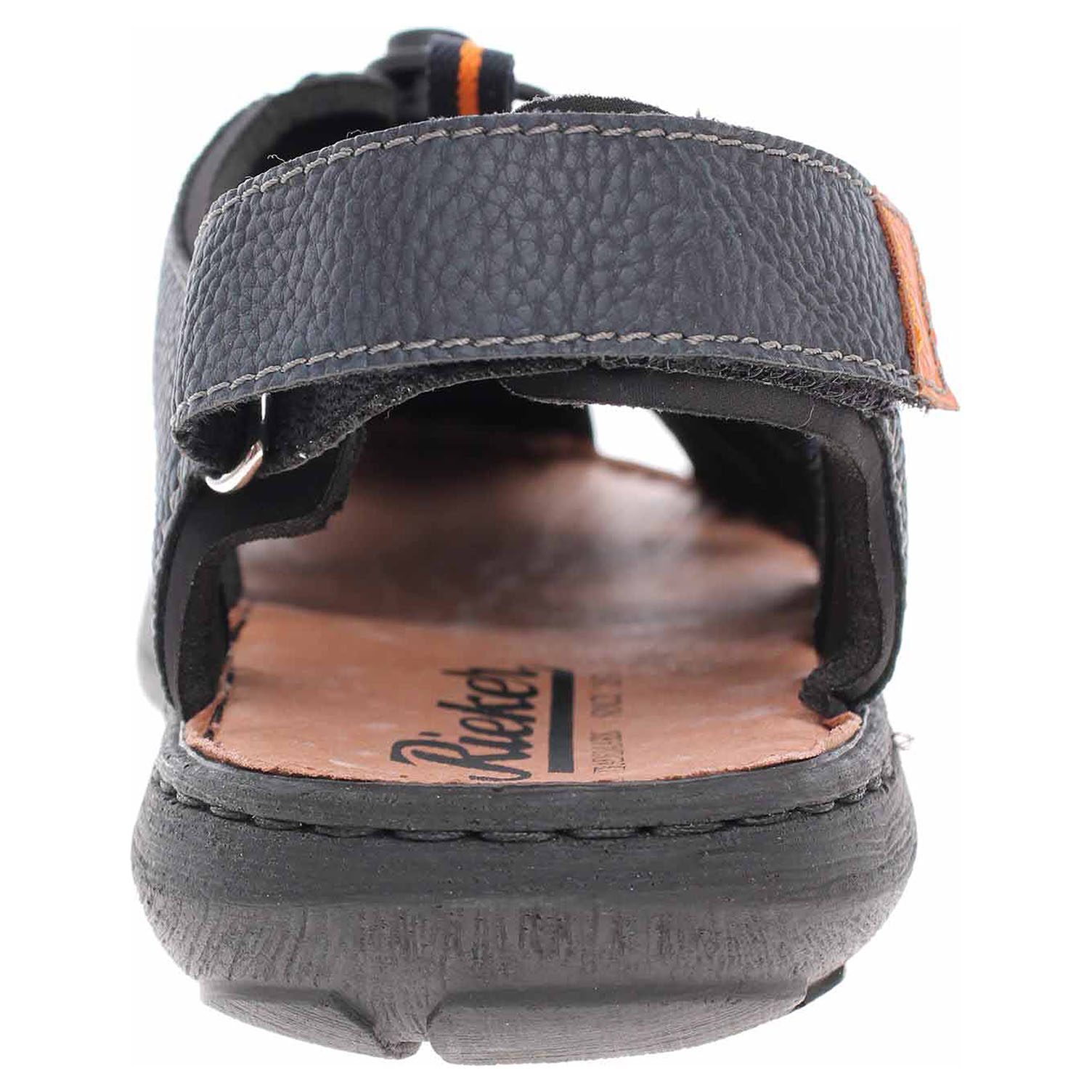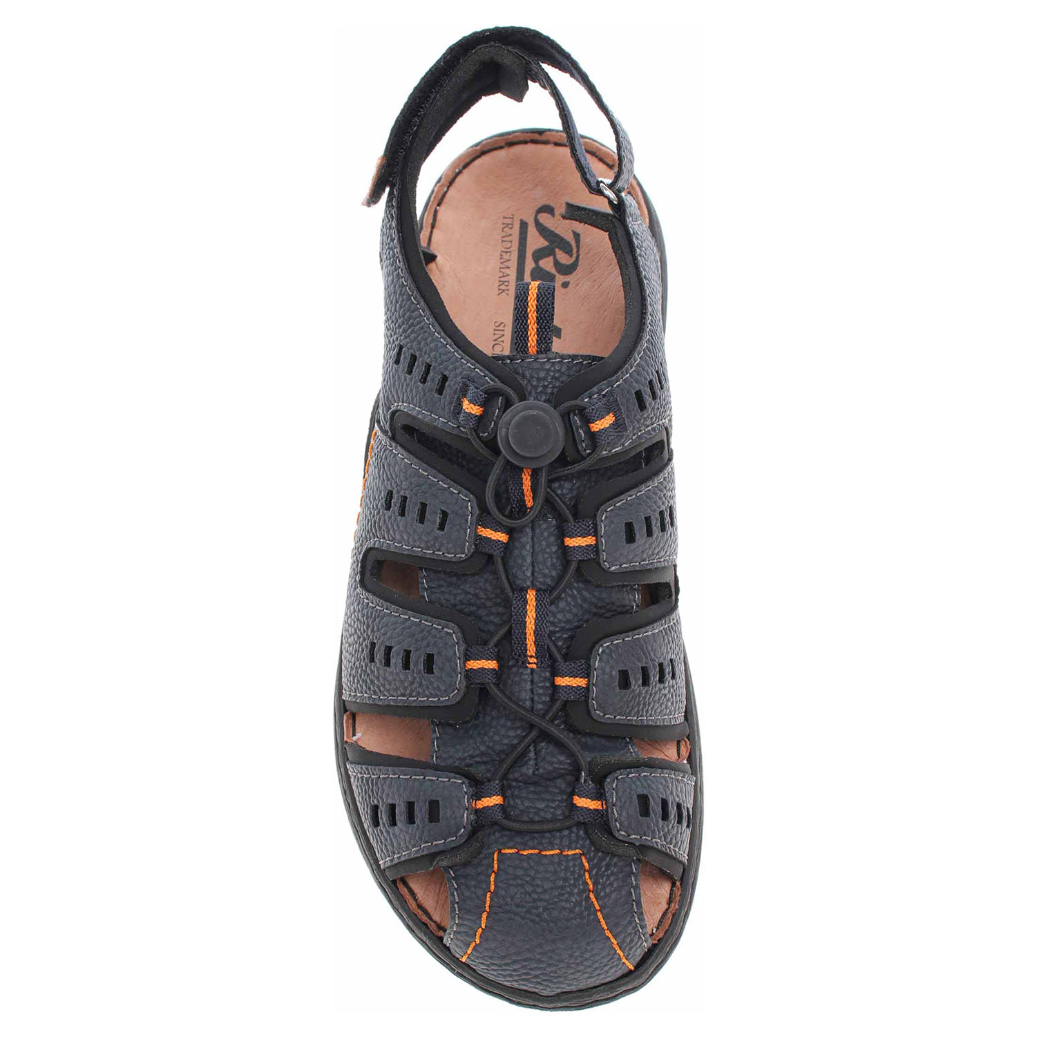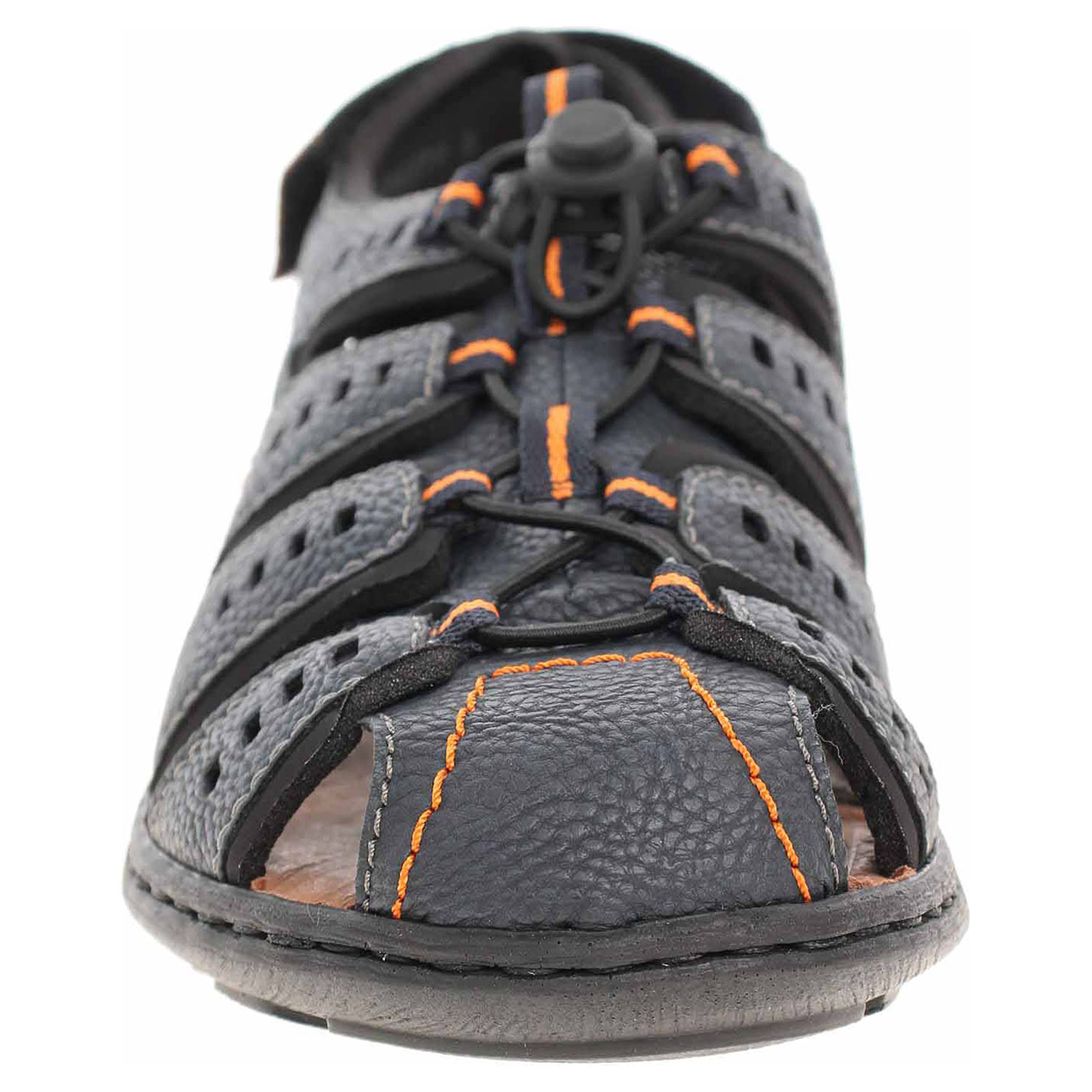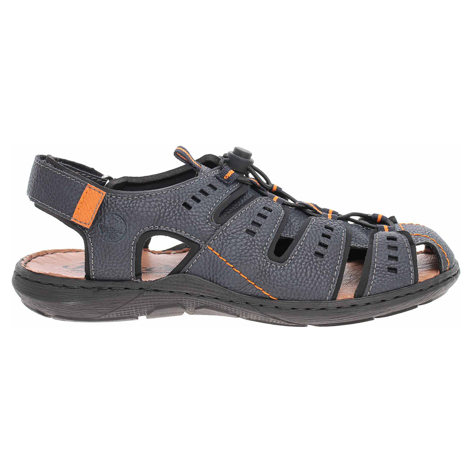 Boty Rieker - pánské uzavřené sandály nadměrné šíře H mají svršek kombinovaný syntetika/textil a vyměkčenou stélku z usně. Šněrováním je provlečená nekonečná gumička s brzdičkou. Pohodlné nazouvání zajištuje pásek na patě, který se zapíná na suchý zip. Klínek je vysoký 3,- cm. Podešev je flexibilní a díky systému Antistress skvěle tlumí nárazy a otřesy.