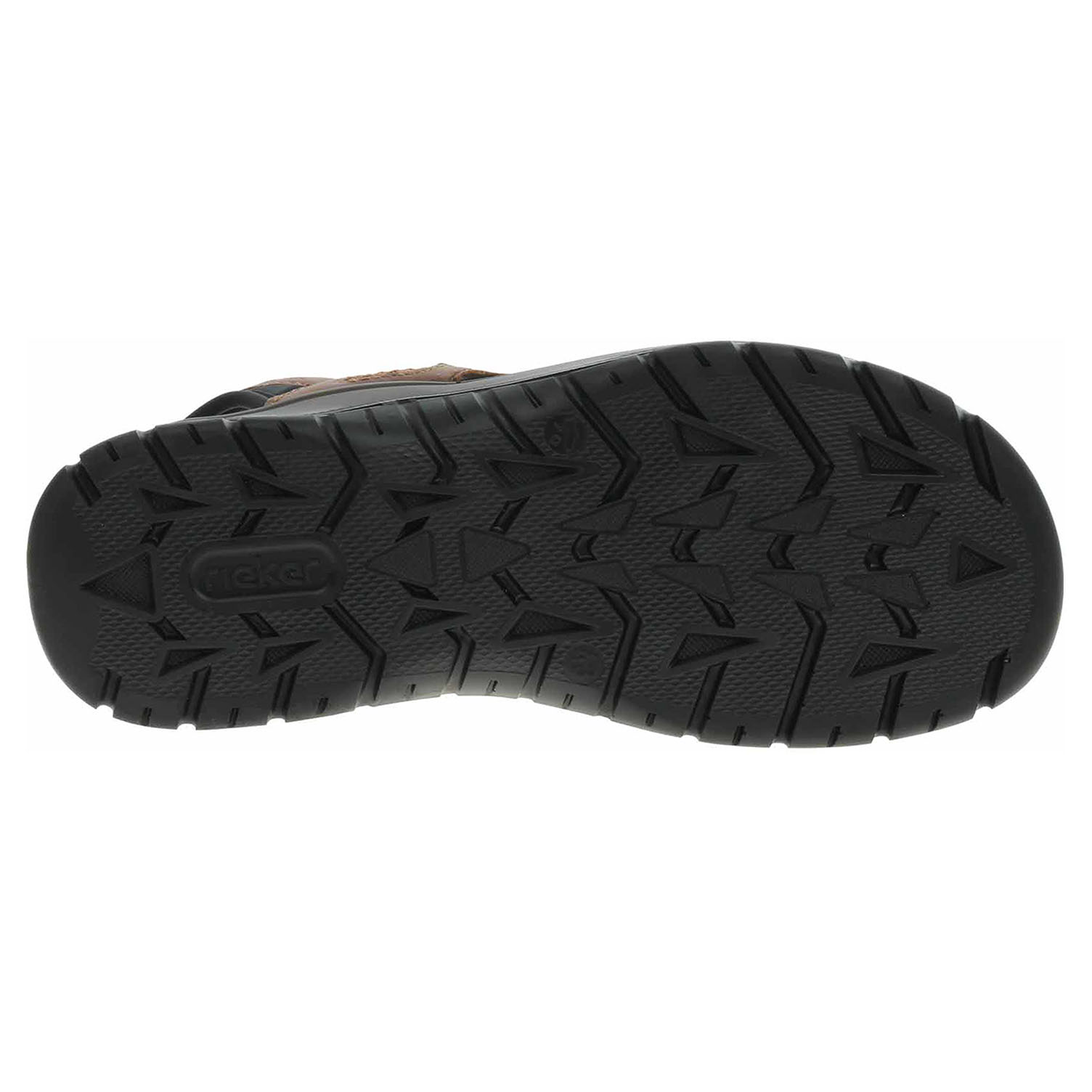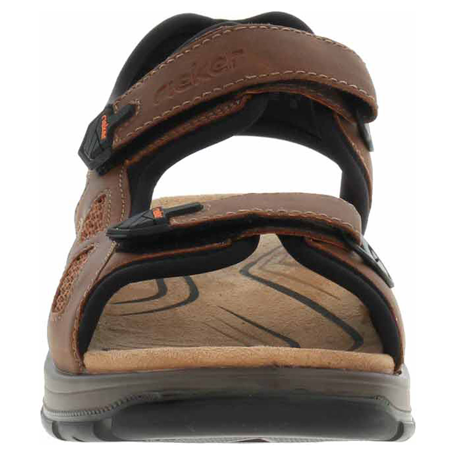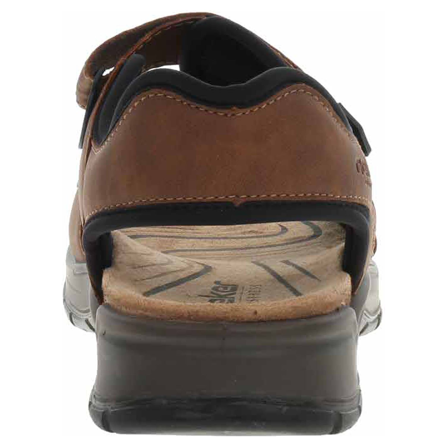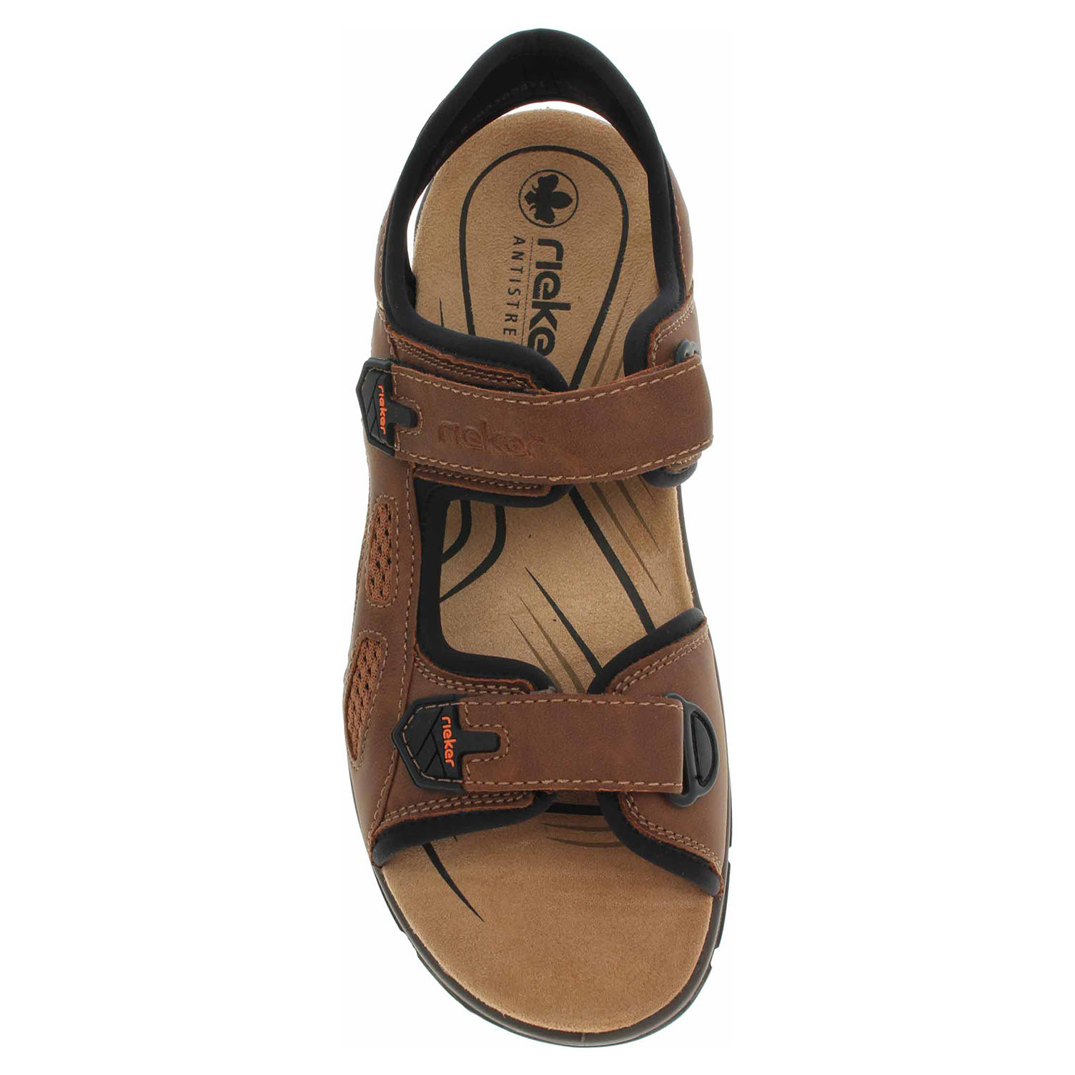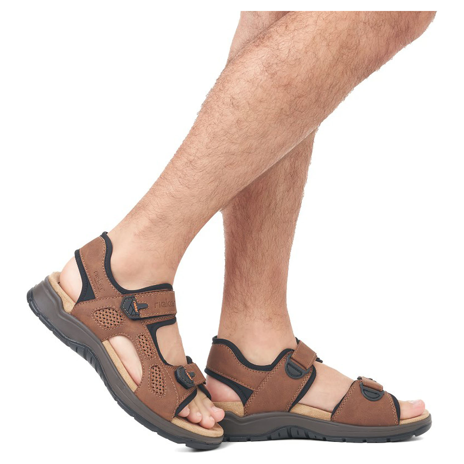 Boty Rieker - pánské sandály se svrškem ze syntetiky a s textilní podšívkou i stélkou. Pásky přes špičku a přes nárt se zapínají na suchý zip. Podešev je flexibilní a díky systému Antistress skvěle tlumí nárazy a otřesy.