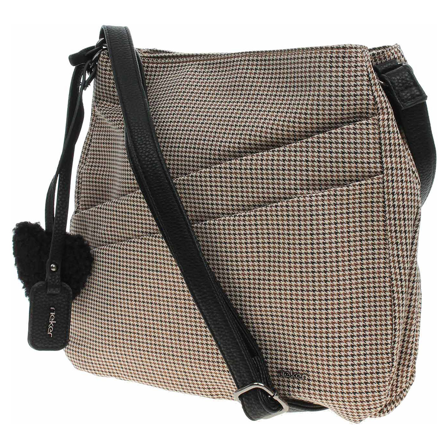 Rieker - dámská, dvoukomorová kabelka z polyesteru a s ramenním popruhen z poluretanu má podšívku z polyesteru a zapíná se na zip. Rozměry - 26 x 31 x 7 cm. Na přední straně jsou dvě kapsy, jedna se zapínáním na patent a druhá se zapínáním na zip. Na zadní straně je kapsa se zipem. Kabelku je možno nosit na regulovatelném popruhu, který se nedá odepnout, přes rameno nebo crossbody.