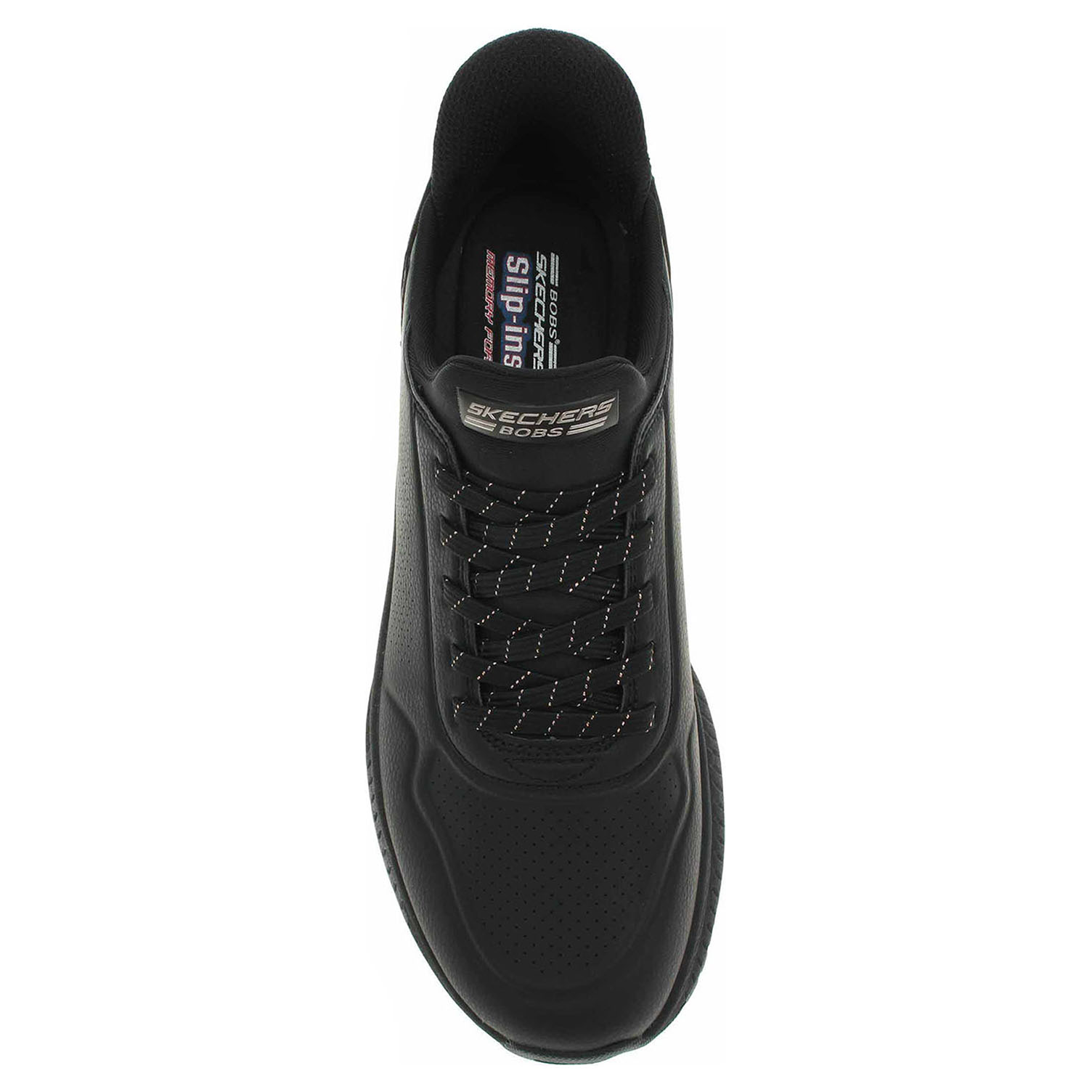 Skechers Bobs Squad 4 - Key Look - lepená dámská obuv s elastickými tkaničkami TIE FIT má svršek ze syntetiky a textilní stélku i podšívku a je pro snadné nošení bez použití rukou vybavená tvarovaným patním panelem Hands Free Slip-ins™ s jedinečným polstrováním v oblasti pasty Heel Pillow™. Maximální pohodlí při chůzi vám zajistí polstrovaná vložka Skechers Memory Foam®. Flexibilní trakční podrážka má klínek vysoký 3,2 cm. Machine Washable - obuv možno prát v pračce ve vlažné vodě na program jemného praní. Obuv nesušte v sušičce, ale jen na vzduchu !