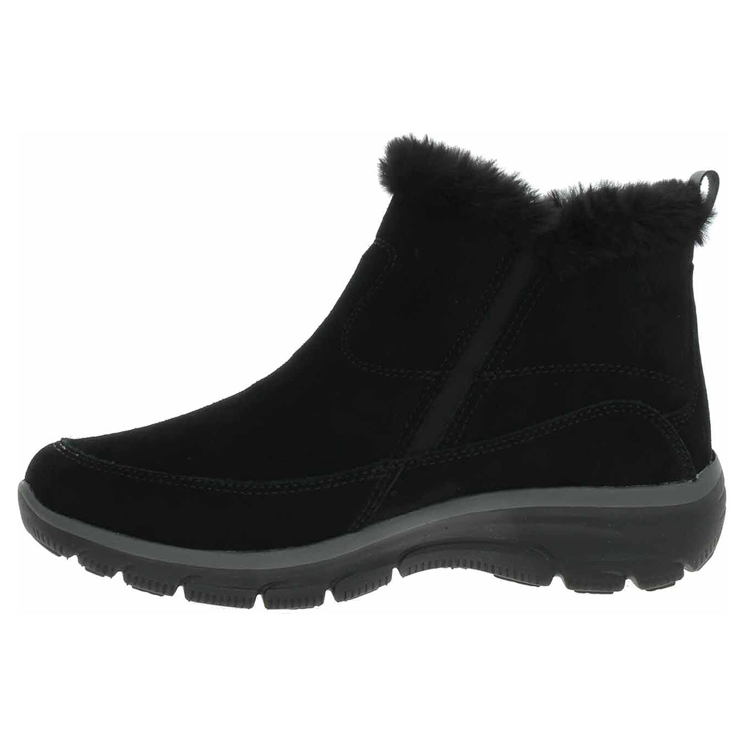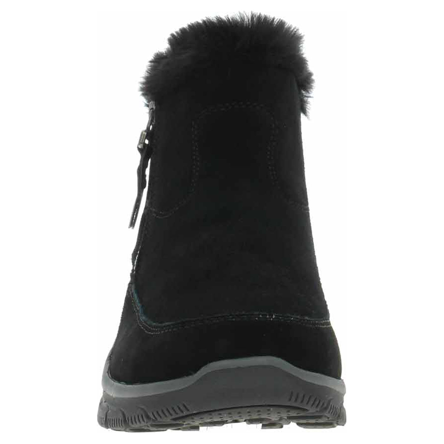 Boty Skechers Relaxed Fit: Easy Going - Cool Zip! - lepené dámské polokozačky se svrškem z usně (semiš) a s lemem z umělé kožešiny jsou vybavené vodoodpudivou úpravou Water Repellent a paměťovou stélkou Air-Cooled Memory Foam (vzduchem chlazená pamět.pěna), která zajištuje chůzi jak na polštáři, ale noha se nepřehřívá a přirozeně se ochlazuje. Pohodlné nazouvání zajišťuje zip na vnější straně a vsazená gumička na straně vnitřní. Relaxed Fit® pro prostorný komfort v oblasti špičky a přední části chodidla. Povrchová úprava svršku Scotchguard Protector 3M funguje na principu nanotechnologie, která textilní materiály pokryje neviditelným "filmem", který zabraňuje špinění materiálu a výrazně prodlužuje jeho životnost. Ochranný povlak zabraňuje kontaktu nečistoty s materiálem a plně zakrývá veškeré póry pro nasáknutí. V opačném směru od materiálu ven je přitom plně prodyšný. Flexibilní trakční podrážka má klínek vysoký 3,8 cm. Lepená obuv - pevnost lepeného spoje může být negativně ovlivněna promáčením nebo propocením, event. opakovaným používáním nedostatečně vysušené obuvi. Při neopatrné chůzi může dojít k mechanickému uvolnění lepeného spoje - ukopnutí.