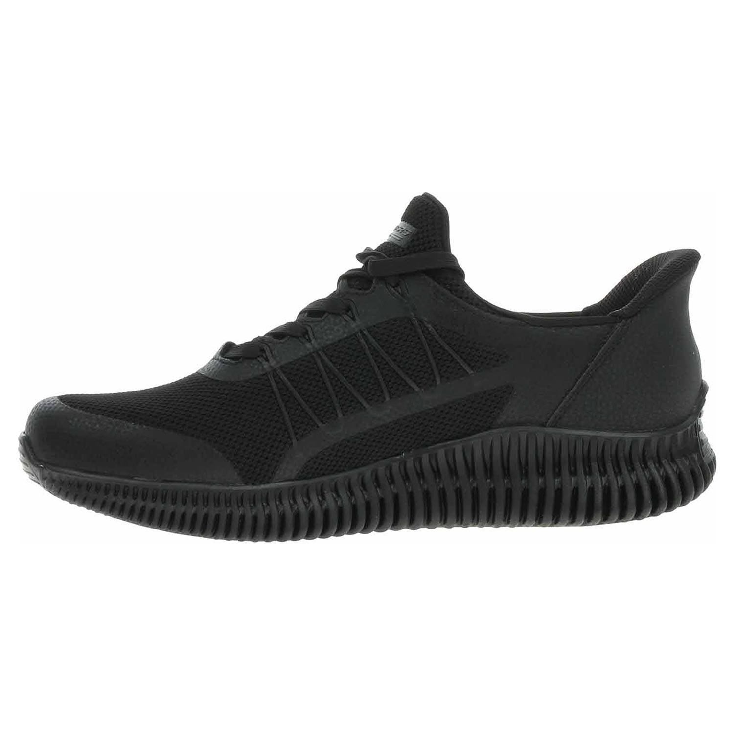 Skechers Slip-ins: BOBS Geo Lite - Fixed Edge - rekreační pánská obuv se šněrováním má svršek kombinovaný technický úplet/syntetika a je vybavená paměťovou stélkou Memory Foam a pro snadné nošení tvarovaným patním panelem Skechers Slip-ins™, který umožňuje nazutí i vyzutí obuvi bez použití rukou. Exkluzivní polštářek Heel Pillow™ drží vaši nohu bezpečně na místě. Flexibilní trakční podrážka má klínek vysoký 3,2 cm. Značka BOBS® from Skechers® se zavázala zachraňovat životy zvířat v nouzi. Rekreační obuv - je vhodná pro rekreačně-vycházkové příležitosti. Není určená k provozování sportovních aktivit.Obuv není vhodná pro každodenní používání.