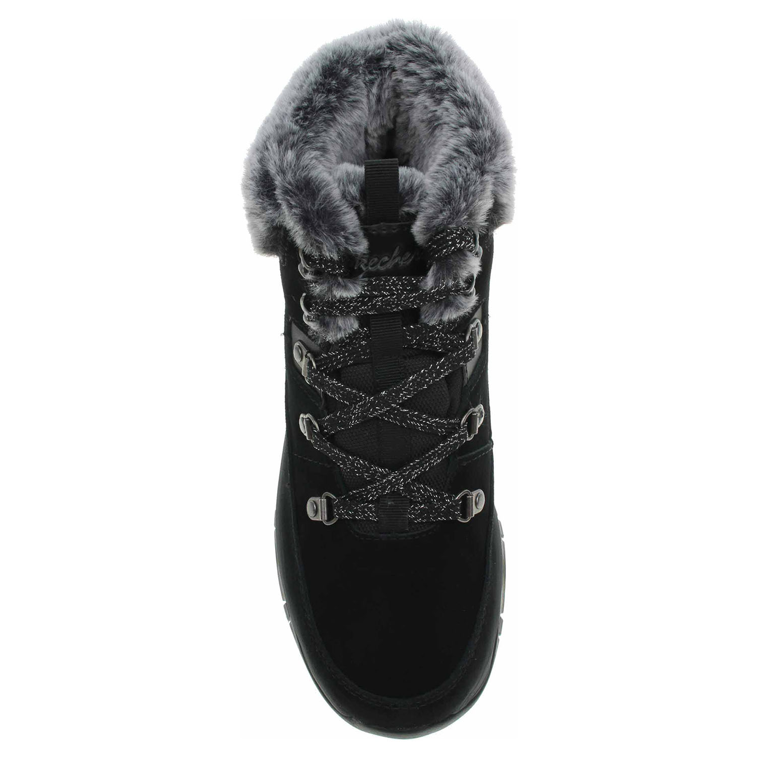 Skechers Waterproof: Trego - Snow Worries - lepené dámské kotníkové se šněrováním mají svršek z usně (semiš) a lemování kotníku z umělé kožešiny a jsou vybavené paměťovou stélkou Air-Cooled Memory Foam® a vodoodpudivou úpravou svršku Waterproof (nepromokavá konstrukce utěsněná ve švech). Měkkoučká stélka (vzduchem chlazená pamět.pěna) zajištuje chůzi jak na polštáři, ale noha se nepřehřívá a přirozeně se ochlazuje. Gumová, protiskluzová podrážka Anti Slip do každého terénu má klínek vysoký 3,18 cm. Lepená obuv - pevnost lepeného spoje může být negativně ovlivněna promáčením nebo propocením, event. opakovaným používáním nedostatečně vysušené obuvi. Při neopatrné chůzi může dojít k mechanickému uvolnění lepeného spoje - ukopnutí.