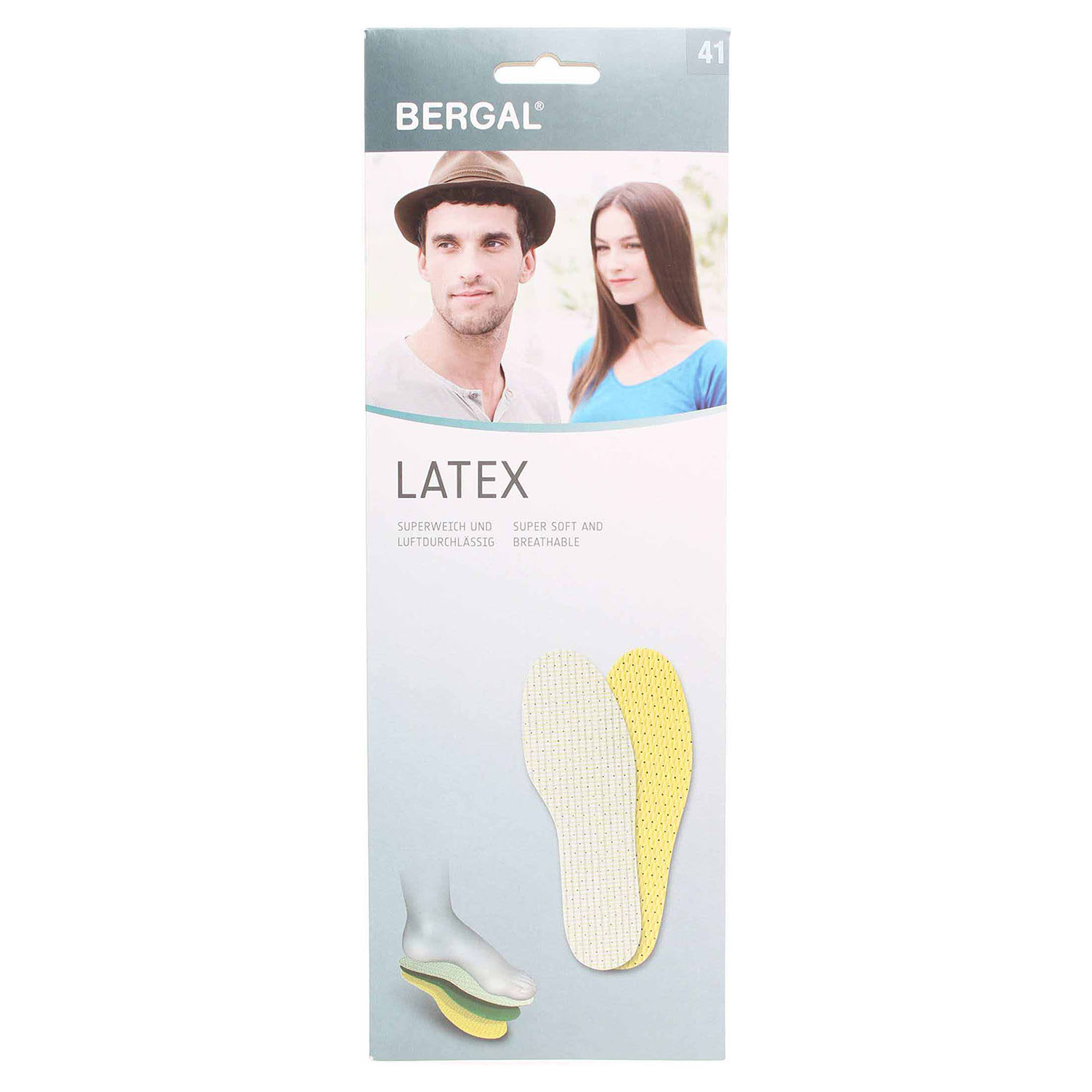 Bergal Latex - latexové vložky do obuvi, které se skládají z textilní vrstvy (bavlněné plátno) a dvou latexových vrstev. Stélky zajišťují velmi měkký došlap a pohodlnou chůzi. Díky perforaci může noha "dýchat" a omezuje se tak nadměrné pocení chodidel. Spodní vrstva je speciálně upravena proti sklouznutí v obuvi.