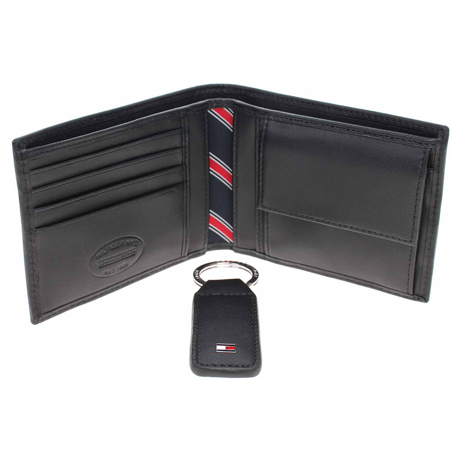 Tommy Hilfiger - pánská rozkládací peněženka z hovězí usně lícové + přívěšek na klíče. Peněženka je vybavená přihrádkami na bankovky, na karty a kapsičkou na drobné se zapínáním na patent. Rozměry peněženky: 13 x 9 x 2 cm. Dárkové balení v originální krabičce.